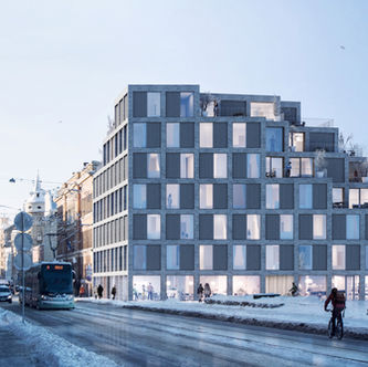 Regular grid network and unified spatial system has taken as a basis of building layout configuration, structural scheme and visual appearance creating pure conceptual design that is adaptable to surrounding environment and building regulations, providing optimal sun exposure and exclusive outdoor area, and yet maintaining its overall simplicity. The grid network with dimensions of 1.7 m x 1.7 m is optimal in order to ensure diversity of layout. Combining the units, different kind of apartments can be generated and building volume filled in all kind of variations. The apartments are arranged around a common central core of the building, thus minimizing the area of staircase and corridors.